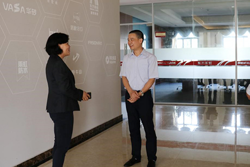 5月16日上午,建德市委常委、组织部长王江一行调研东方雨虹杭州生产基地。 期间,东方雨虹杭州生产基地厂长兼建设总指挥李景绒带领调研组参观了杭州东方雨虹党员活动室,详细介绍了党建工作的开展情况,随后带领调研组深入一线,参观防水涂料、砂浆等生产车间。