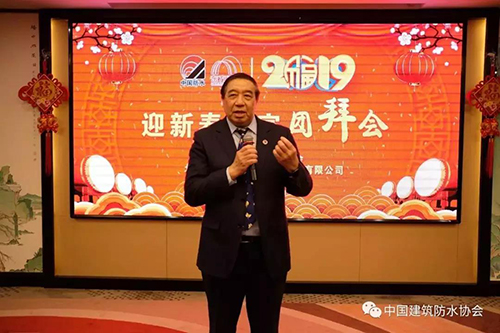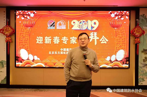 中国建筑防水协会秘书长、专家委员会主任委员朱冬青先生在致辞中分享了2018年行业里的大事:一是蔡昭昀专家及团队荣获国家科学技术进步奖二等奖,实属行业首例;二是行业技能大赛,全国建筑防水行业(防水工)职业技能竞赛的三位冠军钟友良、王巍等选手获得“全国技术能手”称号。最后,他向在座专家们恭贺新年,表达了美好祝愿。