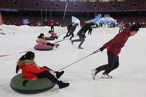 据悉,此次活动围绕着“感恩、回馈、欢乐、激情”的总基调,除了让大家体验现场的诸多冰雪项目外,还设计了雪圈赛跑、亲子呼啦圈比赛、抽奖活动等精彩环节。