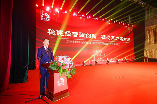 工建集团北方区总经理杨海明做“在变革中融合 在挑战中提升”的主题报告,深入分析了各版块的优势与不足,提出新的工作方针,对2019年的工作提出了具体要求。