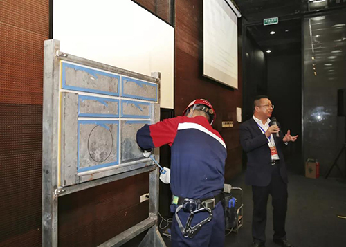 东方雨虹MS胶支持服务平台总监朱卫如从装配式建筑对防水密封胶的要求入手,对几种密封胶的性能差异进行了分析,通过大量实验数据证明MS密封胶满足装配式建筑防水密封需求的性能优势,并详细介绍了东方雨虹以MS改性硅酮防水密封胶为核心的装配式建筑防水密封系统。朱卫如连同拥有丰富施工经验的施工工人刘纪松进行了现场标准化施工演示,为参会人员充分展示了MS改性硅酮防水密封胶在装配式建筑防水密封系统的应用。