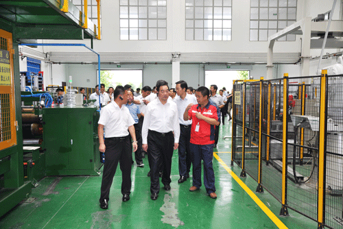 8月26日上午,徐州市委书记、市人大常委会主任周铁根、徐州市市长庄兆林以及市委、市政府办公室、沛县、丰县、睢宁县等班子成员近100余人考察东方雨虹徐州生产基地。