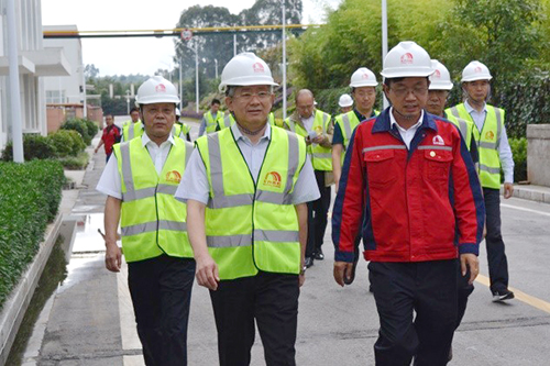 8月6日,全国工商联党组副书记、副主席樊友山,云南省委统战部副部长马春,安宁市委书记王迅、省委统战部工商经济处处长寇强、安宁市委常委市委办主任张宏斌等参观调研东方雨虹昆明生产基地。