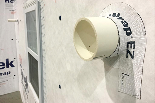 特卫强柔性泛水EZ是一种柔性多功能的自粘泛水胶带,主要用于处理门窗洞口、转角处等积水、渗水、漏水风险较大部位,是特卫强建筑围护系统综合方案的一部分,用来保护建筑免受空气与水的侵蚀,独特的设计使其能够对不同形状和尺寸穿透件的外围进行密封,从而增加整个建筑围护结构的气密性,同时也有助于提高墙体的耐久性和节能性。