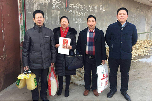 1月30日,青岛东方雨虹厂长兼建设总指挥阳文新与青岛市湖南商会代表一行,前往莱西市店埠镇开展精准扶贫活动。
