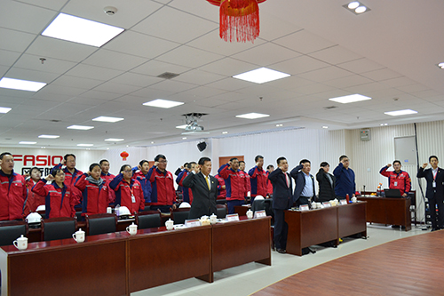 伴随着国歌和风行防水企业司歌的奏响,本次大会正式开始。昆明生产基地厂长陈坤先生对基地2017年的各项工作完成进行了总结,他表示,在全体员工的共同努力下,生产基地完成了集团2017年下达的各项工作任务指标,在有胎、无胎卷材产量、发货量方面均创了生产基地月度历史新高。陈坤要求全体员工继续齐心协力,发扬吃苦耐劳的精神,保质保量的完成新一年集团下达的任务指标。会上对生产基地2017年度“优秀班组”、“优秀员工”进行了表彰,由2017年度大学生校园招聘入职代表发表了加入东方雨虹的感想。