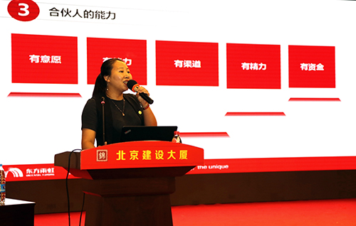 接着,市场部战略客户经理曲博南详细介绍了东方雨虹合伙人制度,并解读了相关的招募政策。