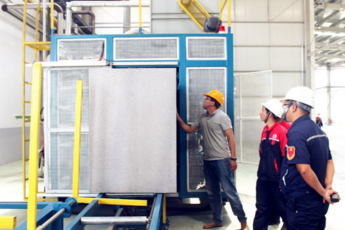 短短66天的时间,从设备进场、安装,到第一块保温板传出生产线,唐山生产基地的员工日复一日的忙碌着,从4月16日,预发泡设备进场安装;到6月3日,成型设备进场安装;再到6月20日,提前10天完成试车,离不开全员的辛勤付出。