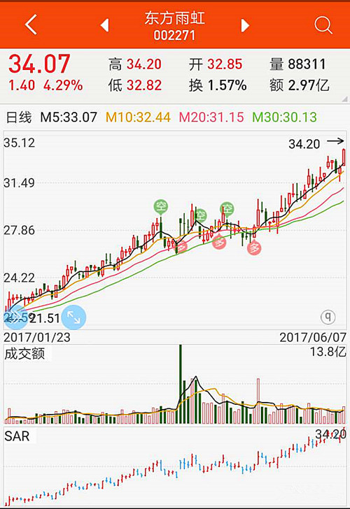 6月7日,东方雨虹(SZ 002271)盘中价为34.20元,截至当日收盘,报34.07元,公司总市值首次突破300亿元。该市值于建筑材料板块排名第二,中小板866家企业中排名第46。 定位为系统服务商,近年来,东方雨虹通过资源、技术、品牌、服务等比较优势的不断提升,以及商业模式、管理模式的不断优化,实现了品质效应、规模效应。因坚持提供高标准的产品和服务赢得客户的认可,因一贯优异的市场表现赢得投资者的认同,全体东方雨虹人将站在新的起点,直面更大的挑战,扬帆新的征程,以更优异的表现,回馈社会各界对东方雨虹的支持和帮助。