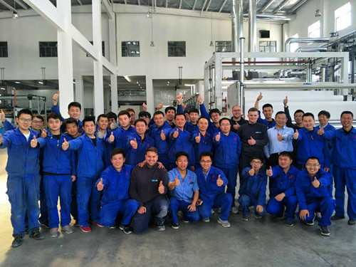 一次性试机通过并投产,这在天鼎丰已经不是了。经过多年生产运营的实践,天鼎丰积累了大量聚酯胎基布生产线的安装调试、生产运营和设备管理经验,培养了经验丰富的技术人员。 据悉,新建1#及6#车间的其余3条生产线也将于近期陆续投产。届时,天鼎丰将拥有10条一步法聚酯纺粘针刺胎基布生产线。新生产线的投产将进一步增强天鼎丰胎基布的产能,巩固天鼎丰在聚酯长丝胎基布市场的地位,并更加高效地为客户提供优质的非织造产品。