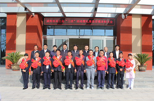 4月24日,咸阳市总工会“送文化、送法律、送知识”暨礼泉县第三届劳动模范先进工作者表彰大会在东方雨虹咸阳生产基地举行。咸阳市工会常务副主席梁立昌、礼泉县县委书记王强民、县长钟伟等市县领导出席活动,县劳动模范先进工作者、礼泉县各企业职工代表300余人参加了本次活动。