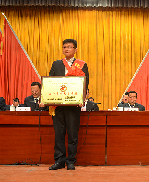 4月7日上午,在云南省安宁市全市年度经济工作会议暨先进经济工作表彰奖励大会上,风行防水连获安宁市市长质量奖、安宁市节能环保奖及安宁市2016年新入归工业企业奖三大荣誉奖项,安宁市市委书记王冰为风行防水颁发了奖牌和证书,风行防水昆明生产基地副厂长陈坤受邀出席会议并领奖。