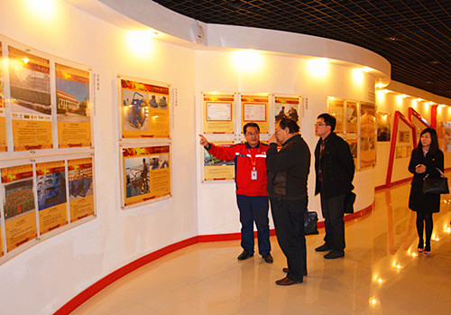 最后,来访人员在东方雨虹上海生产基地厂长喻飞的陪同下,参观了基地的展厅、生产车间。