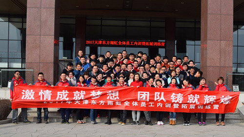 本次集训主题为“激情成就梦想,团队铸就辉煌”,分为团队拓展、课程培训两部分内容。集训前,天津东方雨虹总经理文敬芳作动员讲话,希望大家从这次集训开始,开阔思路,集思广益,大胆探索,勇于创新,在2017年拥抱机遇,大有作为。 集训前两日,由全员共同参与的团队拓展活动丰富多彩,通过摸石过河、云中漫步、勇闯雷阵等拓展项目,充分激发了员工的个人潜能,增强了团队成员的配合度和凝聚力,并使全员深刻领悟到:做任何工作要“谋定而后动,方能事半功倍”。