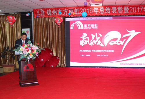 1月19日上午,东方雨虹锦州生产基地举行2016年度总结表彰暨2017年度工作部署大会,当地政府领导、全体员工及部分家属齐聚一堂,分享工作经验,表彰先进,齐头并进,赢战2017。