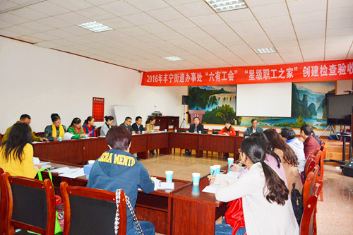 五华区丰宁街道办2016年“六有工会”“星级职工之家”创建检查验收会在风行防水小礼堂召开,昆明市五华区总工会常务副主席张丽萍、职工俱乐部主任熊昆华、丰宁街道总工会副主席杨忠国一行莅临风行防水指导,辖区内有关企业共计16家前来参会。 11月3日