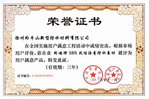 近日,中国质量协会、全国用户委员会举办了2016年全国实施用户满意工程评选活动。凭借高品质的产品、卓越的用户体验,卧迪牌SBS改性沥青防水卷材在众多强劲对手中脱颖而出,摘得“全国实施用户满意工程先进单位用户满意产品”荣誉称号。
