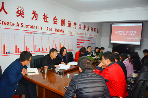 12月13日上午,风行防水组织召开2016年质量、环境、职业健康安全管理体系第二次内审首次会议,旨在对公司一年来分解落实年度质量、环境、职业健康安全管理目标的完成情况及过程管控进行全覆盖、全要素内审,以持续改进和增强体系的运行效果,不断促进公司管理水平的提升。风行防水副总经理刘光宗主持会议,由公司高管、内审员组成的审核组共计11人参与了会议。