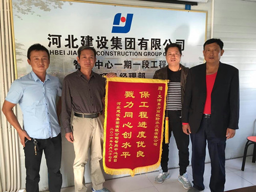 这面锦旗不仅代表总包方对天津东方雨虹的赞扬,也是对工程管理部项目经理裴志伟服务精神的高度认可,他带领施工队伍在每个项目上严格执行标准化施工,体现了东方雨虹“守正道、成匠道”的匠人精神。