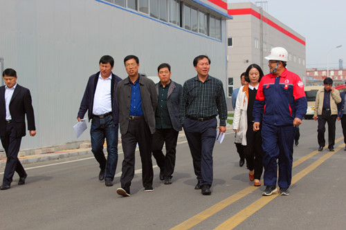 10月9日上午10点,唐山市政府副秘书长梁立航、慈慧,丰南区区委常委、办公室主任、区直机关工委书记孙守廷,丰南临港工业园区主任张金宝,副主任陈强等一行12位领导调研东方雨虹唐山生产基地。