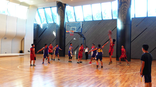 7月27日,广州骄阳似火,广东东方雨虹与中建二局三公司华南分公司篮球友谊赛在南沙区南湾篮球馆举行。