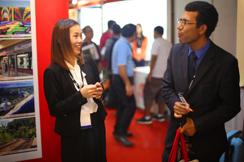 与参展嘉宾进行交流