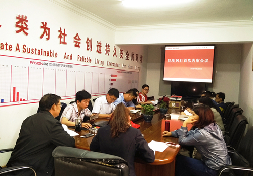 6月3日,风行防水2016年质量、环境、职业健康安全管理体系内审会议在公司小礼堂召开,公司领导、各部门经理、内审员共计15人参与了本次会议,正式启动本年度管理体系内部审核,以验证公司在管理运行中的适应性、有效性、充分性。 本次内审将持续12天,各内审员分小组依照“三标一体”的标准要求通过面谈、现场查验、翻阅记录等形式进行交叉审核,核查各部门是否管理目标明确、制度健全、流程清晰、执行到位、记录完善可供备查。
