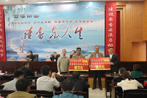 4月27日,岳阳市云溪区“云溪讲堂”专题讲座在区委常委、组织部长、统战部长杜宇和区委常委、宣传部长胡蝶的主持下隆重举行。岳阳东方雨虹受邀参加并向云溪区农村文化礼堂捐赠一万元购书基金。 岳阳东方雨虹副厂长闫潇彬作为参会企业代表发言,感谢云溪区对东方雨虹发展的支持,也郑重表示,公司将一如既往地投身于公益事业,加快融入当地文化,实现与当地人文、经济的共荣共赢。 东方雨虹捐赠购书基金,意在为当地百姓提供良好的学习氛围,贯彻“全民读书”的理念,鼓励大家勤于读书,用新知识丰富自己,在提高自身文化素质的同时,丰富精神文化生活,共同推进社会主义新农村建设。