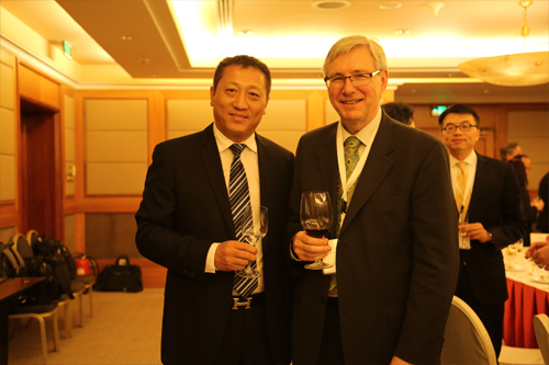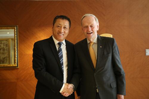 东方雨虹防水集团总裁刘斌(左)与加拿大前总理克雷蒂安(右)