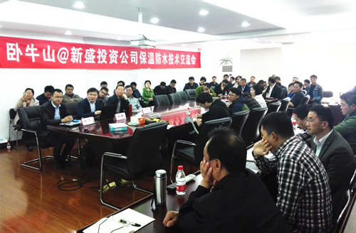2016年4月9日上午,江苏卧牛山公司走进徐州新盛投资公司,举办了一场建筑外墙保温、防水技术交流会,新盛投资公司相关部门、各分子公司及各项目部建设总包方、监理单位共计60余人出席了本次交流会,共同探讨建筑外墙保温、防水施工的各项要求。