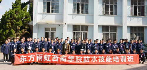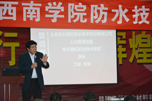 4月7日上午,东方雨虹职业技术学院西南学院在昆明风行防水材料有限公司组织开展了获取国家职业资格证的防水技能专项培训。来自四川、云南等地的工程渠道代理商及施工工人、直属业务施工工人共计60余名学员参加了本期培训班。 昆明风行防水材料有限公司总经理吕学强先生首先致欢迎词,并预祝各位学员取得优异成绩。会上,东方雨虹人力资源总监、东方雨虹职业技术学院院长丁毅先生发表了关于工匠精神、传承及未来防水行业防水工人的要求及社会地位提高的讲话,并强调了术业有专攻,本次防水技能培训一是要注重精神,切实做到“匠心匠魂”;二是要注重流程,熟练掌握技能,通过培训不断学习,助推防水行业的飞跃。