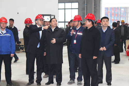 3月23日,陕西省副省长姜锋、省政府副秘书长张宗科一行,在咸阳市委副书记市长卫华、常务副市长陈俊锋、礼泉县委书记王强民、县长钟伟等市县有关部门领导的陪同下考察东方雨虹咸阳生产基地,东方雨虹董事长李卫国、生产运营中心总监陆殿富接待了考察团一行。 副省长姜锋一行饶有兴致地参观了基地涂料生产车间和正在安装的卷材车间,高度赞扬了咸阳基地的建设情况,并对基地建成后的发展前景表达了较高的期望,他希望东方雨虹加紧咸阳生产基地二期项目的建设,将咸阳生产基地也发展成为当地防水行业的标签,为经济发展再作贡献,同时表示,政府会加强政府扶植引导,为企业做大做强注入活力,协力助推陕西省经济健康发展。