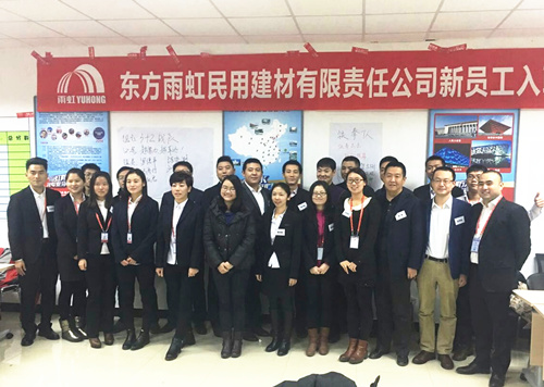 2016年1月25日,东方雨虹民建企业大学“常青藤”培训项目迎来新年第一期22名培训学员。 “常青藤”培训项目旨在为东方雨虹民用建材有限责任公司新入职员工提供企业文化、制度流程方面的培训,以及行业、产品、应用技术等方面的知识补给,促使新员工全面了解公司的规章制度,认同公司的企业文化。 本期培训历时5天,共组织进行了15门课程讲授。东方雨虹民用建材公司总经理熊俊为本次培训致辞。东方雨虹民用建材公司产品技术总监熊卫锋、应用技术总工程师徐斌等公司经验丰富的中高级管理者组成讲师阵容,纷纷通过实际案例、动手实操为学员们讲授了专业知识。 通过本次培训,使学员全面了解公司的经营模式及管理制度,坚定了工作信念,满腹能量回到各自的岗位,为实现卓越东方雨虹贡献力量。