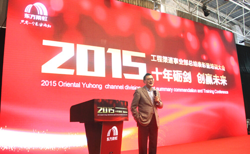 颁奖结束后,东方雨虹工程渠道事业部总经理刘绍光做总结发言,他希望在今后的工作中,大家都要拿出一拼到底的气势,努力到无能为力、拼搏到感动自己,2016年再创佳绩。