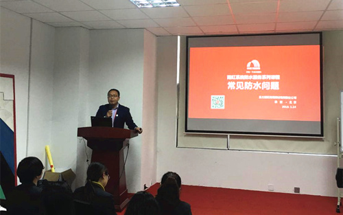 1月14日下午,东方雨虹民建企业大学首堂公开课正式开讲。特邀请东方雨虹民建公司高级讲师徐斌,讲授《雨虹系统防水服务系列课程之常见防水问题介绍》,东方雨虹民建公司非业务序列共计66名员工参加了本次培训,旨在为非业务序列员工普及与扩散防水系统理念,使其能为业务人员及客户提供更好更专业的支撑和服务。