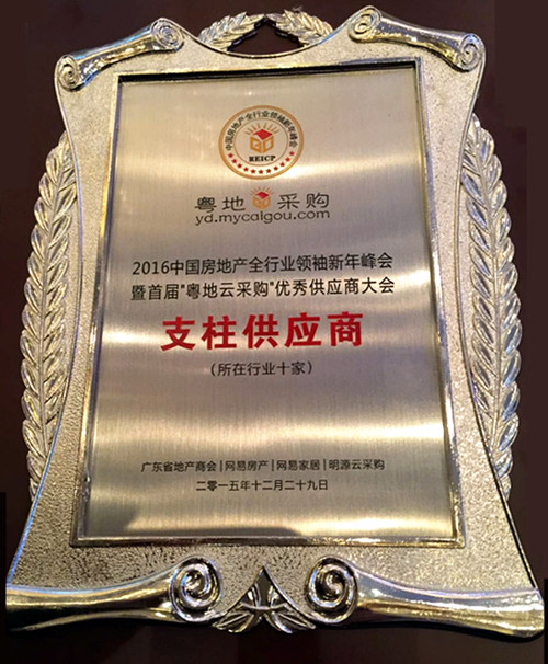2015年12月29日,“2016中国房地产全行业新年峰会”暨“中国地产家居榜和粤地供应商大会”在广州香格里拉大酒店隆重举办。本次峰会由广东省地产商会、明源云采购、网易家居联合举办。富力集团董事长李思廉、星河湾集团董事长黄文仔、时代地产董事长岑钊雄等房地产“大咖”同台激辩,以房企转型探索、营销创新、智慧住区、采购模式变革为切入点,集中探讨“互联网+”时代背景下房地产与家居行业的转型与发展,来自房地产行业上下游企业近1000余行业精英出席了此次峰会。 降低经营和采购成本、创新产品、提高效率,已成为企业发展的必然趋势。在本届“2016年中国房地产全行业新年峰会”上,多位嘉宾参与了主题为“粤地云采购——共筑新年‘军团采购’共赢之路”的论坛沙龙。经过“明源云采购”平台和广东省开发商的强烈推荐,最终评定江苏卧牛山保温防水技术有限公司荣获“保温材料类支柱品牌供应商”这一殊荣。