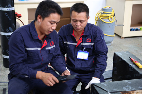 来到东方雨虹接近八年的张立和第一届屋面防水大师钟友良是同一期的培训学员,从来到东方雨虹开始,无论在生活上还是工作上,张立对年长一些的钟友良都保持着亦师亦友的尊敬。