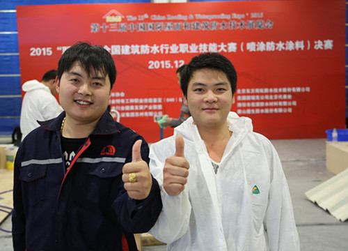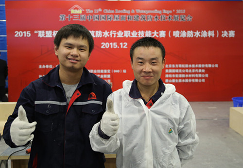 12月17日,第十三届中国国际屋面防水技术展览会开展第三日,现场进行了2015年“联盟杯”全国建筑防水行业职业技能大赛(喷涂防水涂料)决赛。东方雨虹凭借标准化施工与系统化服务理念,在“联盟杯”系列赛事中喜讯频传,本次“联盟杯”喷涂防水涂料组决赛一亚一季也被东方雨虹纳入囊中。 经过数月的激烈角逐,最终有12支参赛队进入总决赛。本次比赛中,以东方雨虹宋悦为主操手、汪元为副操手的参赛队获得亚军,以东方雨虹廖荣新为主操手、王巍为副操手的参赛队获得季军。颁奖结束后,宋悦坦言:“每一次的施工服务对我们来说都是一场比赛”。东方雨虹倡导“工匠精神”、“匠心品质”,要求将“雨虹标准”应用于每一次的施工服务。