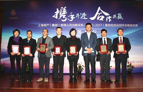 2015年11月25日下午两点,上海地产(集团)有限公司(以下简称上海地产)2015-2017年度战略采购暨首批部品部件合格供应商签约仪式在上海地产大厦举行,上海东方雨虹作为上海地产防水材料类战略供应商出席了本次仪式。 仪式上,上海地产副总裁蔡顺明致辞,对战略合作伙伴的大力支持和竭诚付出表示感谢,并强调了建立战略合作商系统有利于实现高效采购、资源共享,获取采购成果。随后,上海东方雨虹常务副总经理王建波作为上海东方雨虹代表与上海地产签订防水战略合作协议。 上海地产(集团)有限公司成立于2002年,是经上海市人民政府批准成立的国有企业集团公司,旗下有170多家企业,业务范围横跨房地产开发、保障房建设、滩涂储备、开发区建设管理等多个领域。 上海东方雨虹作为其防水战略合作伙伴,将会致力于提供专业、优质、一体化的防水服务体系,双方携手并进,合作共赢。
