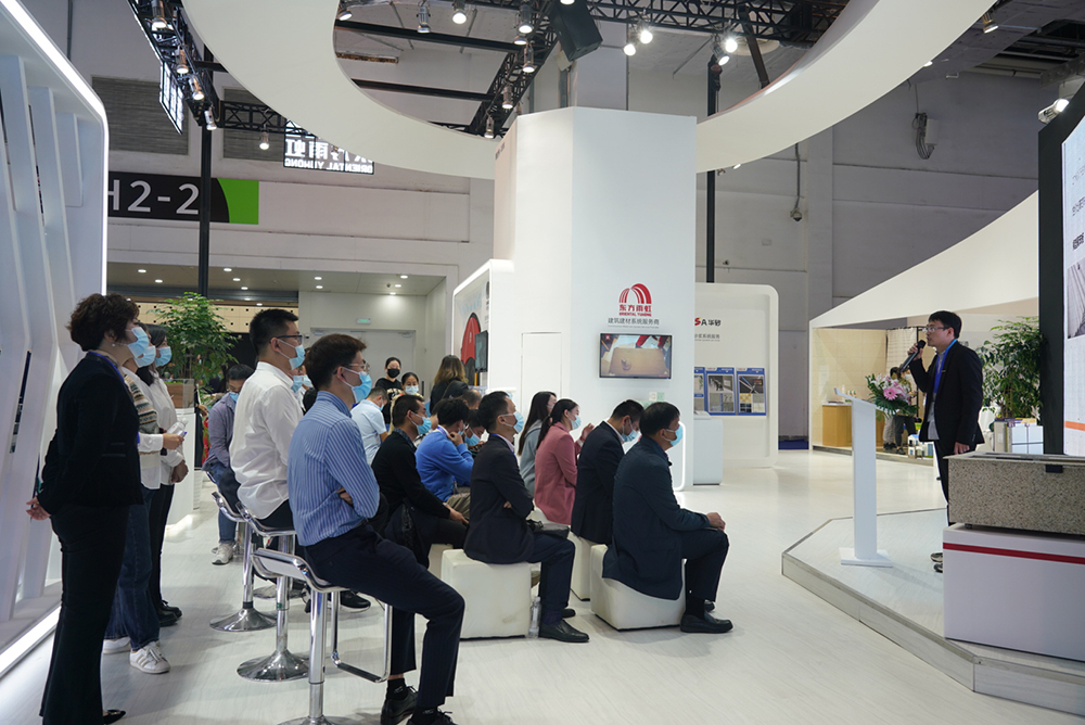 在众多展位中,卧牛山(WONEWSUN)展位脱颖而出,其高质量的创新产品与强有力的技术优势备受关注,吸引了大量参展人员及媒体驻足询问。此外,卧牛山(WONEWSUN)聚焦碳达峰、碳中和与建筑业的有效衔接,紧扣展会主题及本土化保温政策进行《上海新政后墙体内外保温装饰推荐》专项宣讲,为该政策提出合理解决方案,并展示应对此政策的节能、保温、装饰相关产品,诠释“韧性城市,低碳生活”。