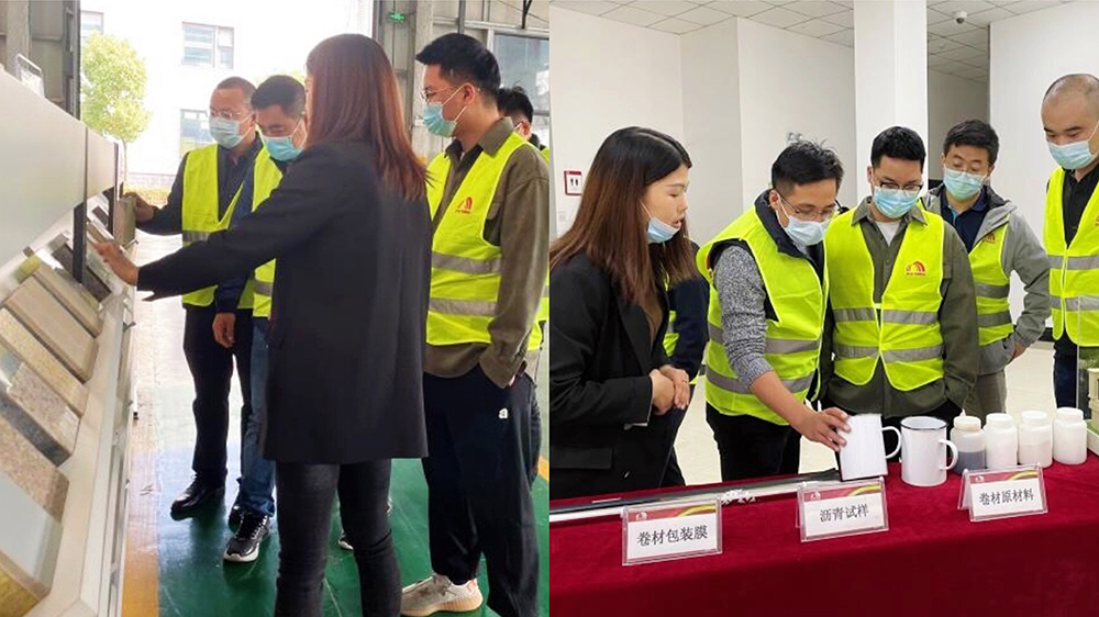 期间,江苏溧阳建设集团有限公司高管团队参观考察芜湖东方雨虹生产研发物流基地的生产现场、生产设备和产品应用等情况。